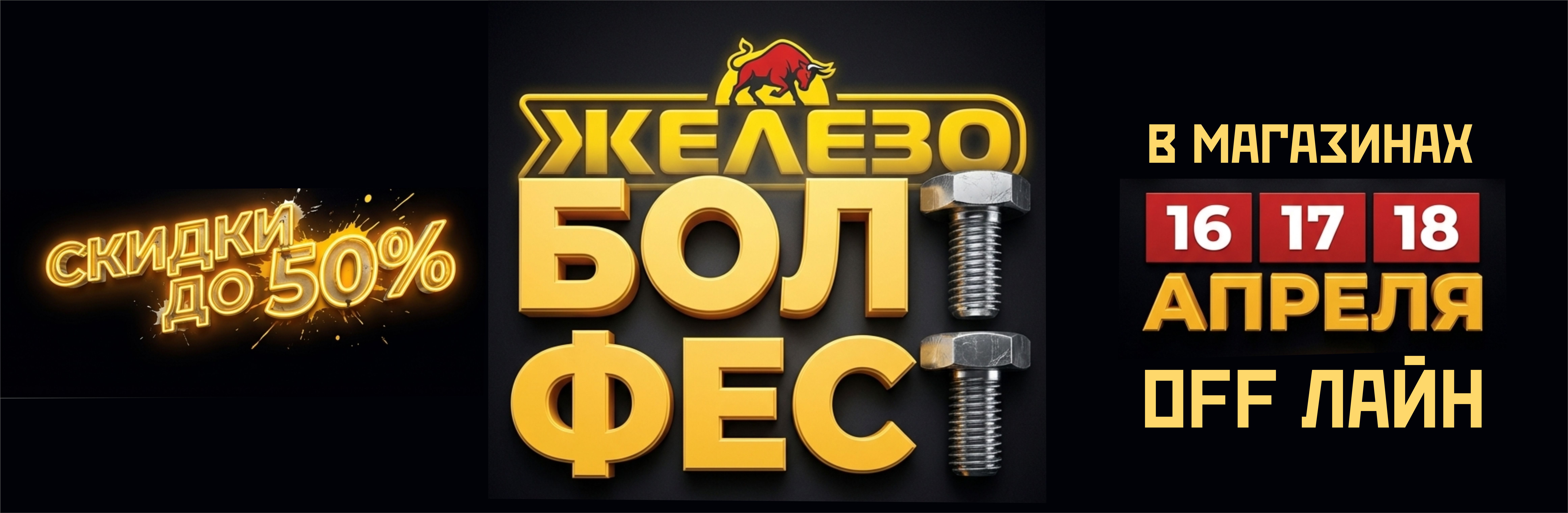 16, 17 и 18 апреля: грандиозная распродажа «БОЛТ ФЕСТ» в магазинах Железо