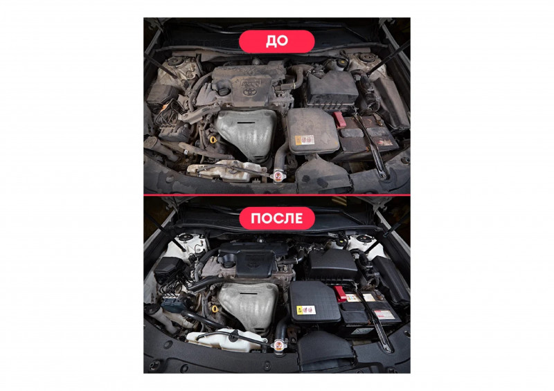 Чистящее средство. Произведено на основе эффективных моющих компонентов и активных добавок. Предназначено для наружной очистки подкапотного пространства (двигателя и его частей) от масляных пятен, подтеков смазки, налипшей пыли и других загрязнений. Мощная щелочная формула позволяет очистить даже самые застарелые загрязнения.