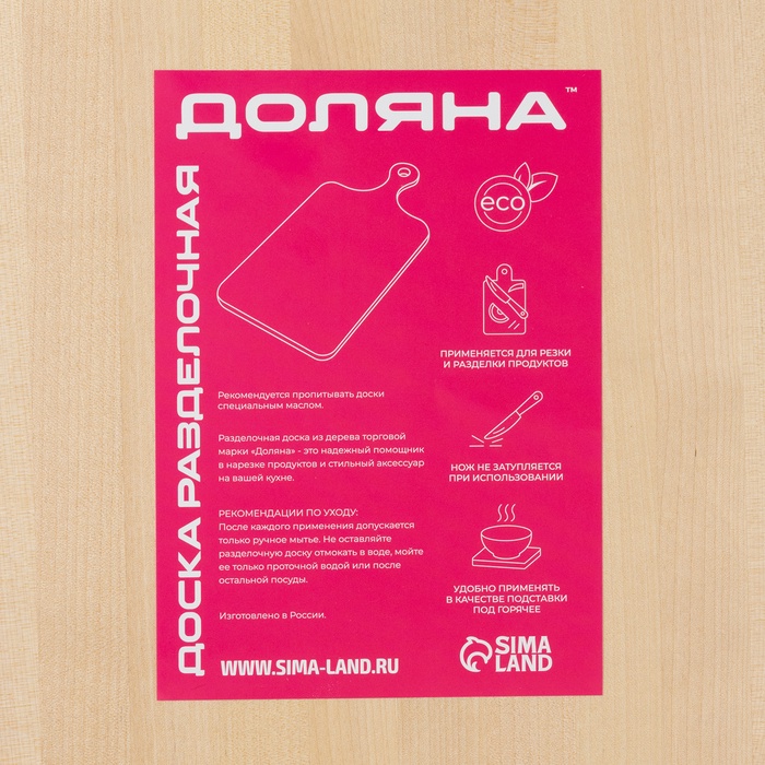 Изделие нужно обязательно мыть вручную в тёплой воде сразу после использования. Замачивание доски в раковине повредит её: от воды древесина может испортиться.