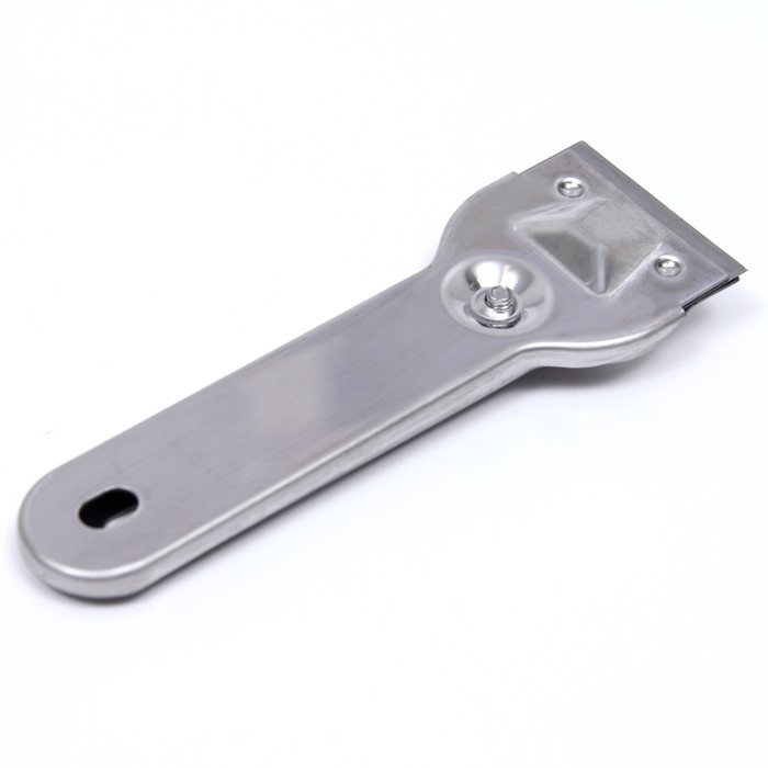 Металлический скребок для стеклокерамики представляет собой универсальный инструмент, который станет незаменимым в помощи в поддержании чистоты в доме. Особенно эффективен он на стеклокерамических поверхностях, где может легко и безопасно удалять остатки пищи, засохшие пятна и другие загрязнения.Металлическая конструкция скребка обеспечивает прочность и долгий срок службы инструмента. Острое лезвие справляется с различными типами грязи, делая процесс очистки быстрым и эффективным. Рукоятка скребка удобна в использовании, обеспечивая надежный захват и контроль при работе.Забудьте о трудноудаляемых пятнах на вашей стеклокерамике и других поверхностях – этот металлический скребок станет вашим верным союзником в борьбе за чистоту и блеск в вашем доме.