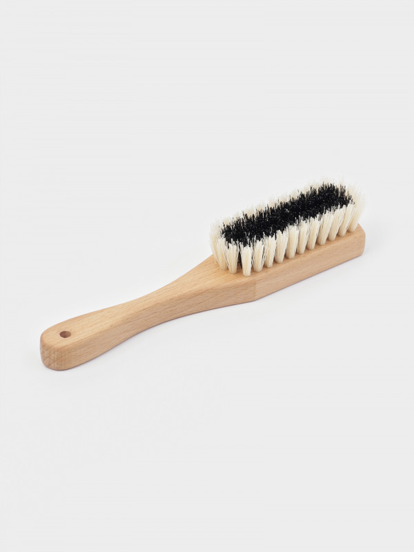 Длинная ручка из натурального бука делает использование щётки комфортным. Она имеет компактный размер,удобна для хранения и переноски. Полезные в быту принадлежности помогут выполнить последние штрихи перед выходом на улицу— быстро и без особых усилий придать вещам опрятный и аккуратный вид. Наполняйте каждый шаг уверенностью и с удовольствием занимайтесь привычными делами, а о чистоте позаботится щётка для одежды.