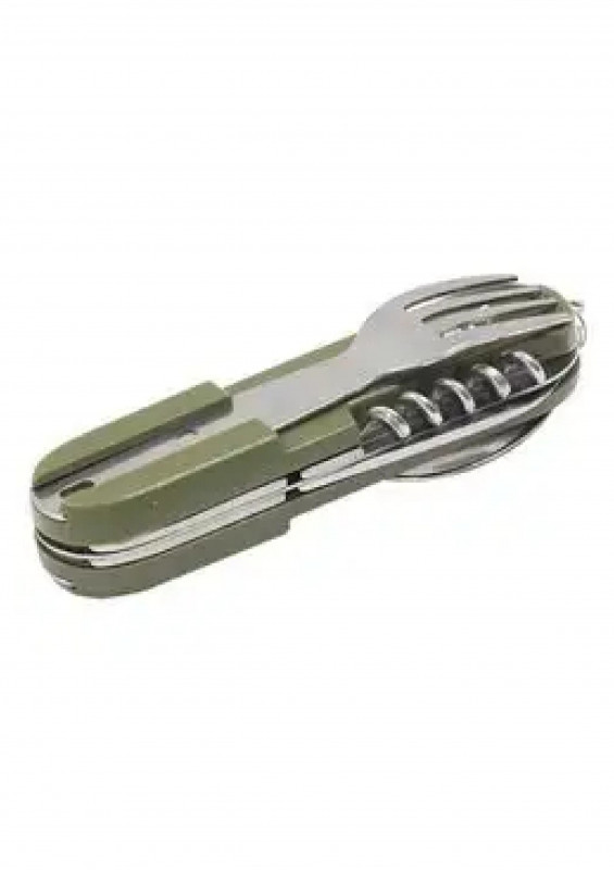 Мультитул изготовлен из комплектующих высочайшего качества, которые выполнены из особопрочной нержавеющей инструментальной стали.Режущие кромки ножей остро заточены, а эргономичная рукоятка обеспечивает удобство и безопасность использования изделия.Помимо ножа, штопора шила и открывашки, в комплект мультитула входят вилка и ложка, а значит с этим комплектом вы всегда будете иметь столовые приборы под рукой. Компактный размер позволяет хранить столовые приборы в небольшом чехле.