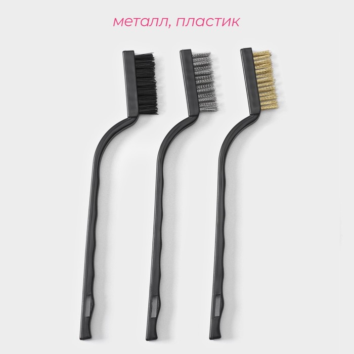 Набор щеток 3шт:латунная,стальная,нейлоновая