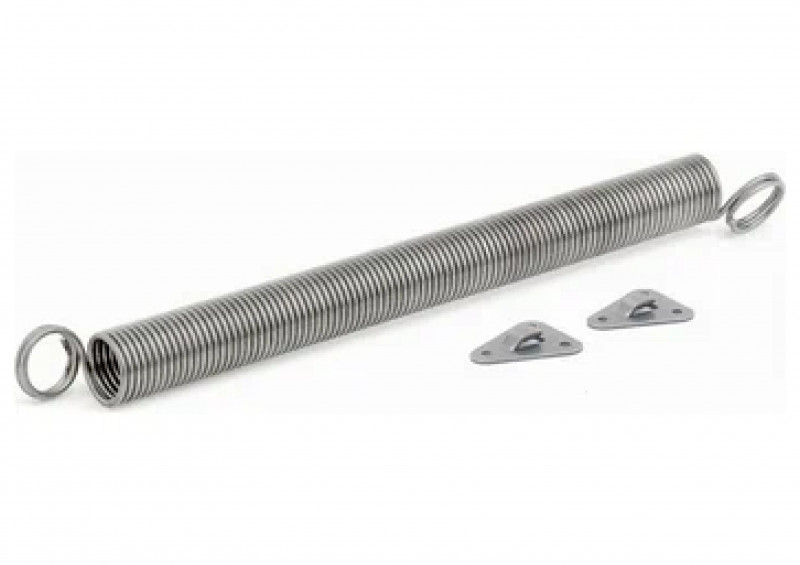Пружина — одна из простейших конструкций доводчиков. При открывании двери изделие растягивается, а при закрывании сжимается обратно и возвращает полотно в исходное положение.
