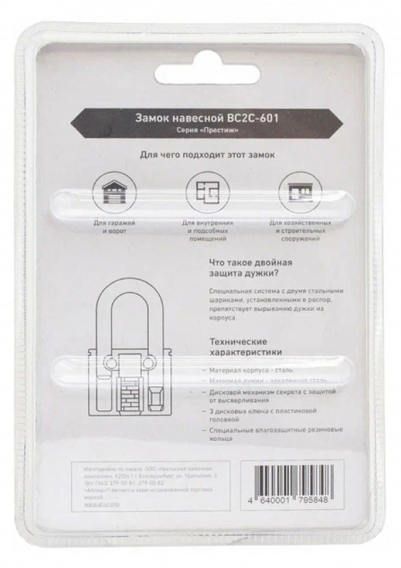 Замок навесной ВС2С-601 d-10,5мм Аллюр черный
