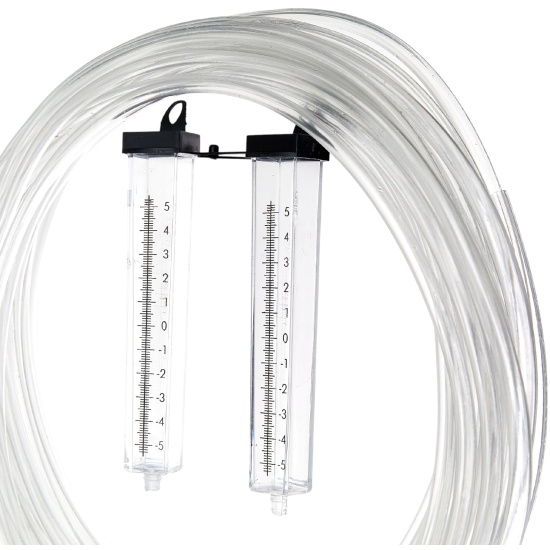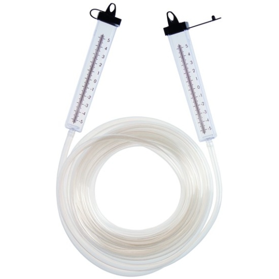 Гидроуровень состоит из двух пластмассовых колб с нанесенной на них шкалой и гибким шлангом, соединяющим колбы между собой. Используется при определении относительного уровня поверхностей, удаленных друг от друга.