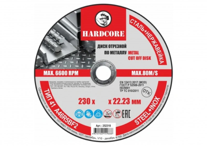 Профессиональное качество дисков, высокая производительность и длительный ресурс. Диски Хардкор произведены на крупнейшем заводе с 30 летним опытом по производству дисков для резки металла, с использованием высококачественной продукции и передовых технологий в производстве. Поставки клиентам по всему миру, включая Германию и другие страны Европы.