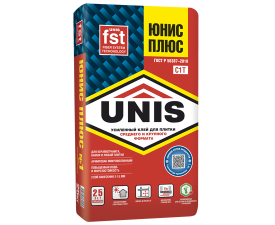 «ЮНИС ПЛЮС» рекомендуется для сложных задач: для системы «Тёплый пол», для крепления керамогранита на фасад, укладки поверх старой плитки («плитка на плитку»).