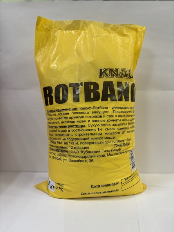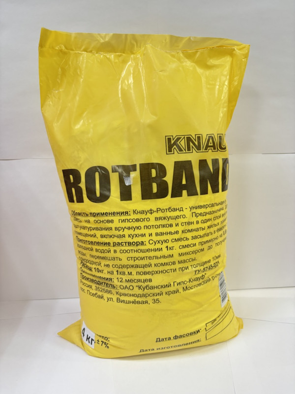 Сухая штукатурная смесь на основе гипса с полимерными добавками, обеспечивающими повышенную адгезию.